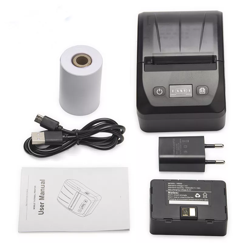 Má standardní duální rozhraní Bluetooth + USB, kompatibilní s příkazy Android, iOS, Windows a ESC/POS. Kompletní příslušenství obsahuje: USB nabíjecí kabel, napájecí adaptér, roli papíru a uživatelskou příručku.