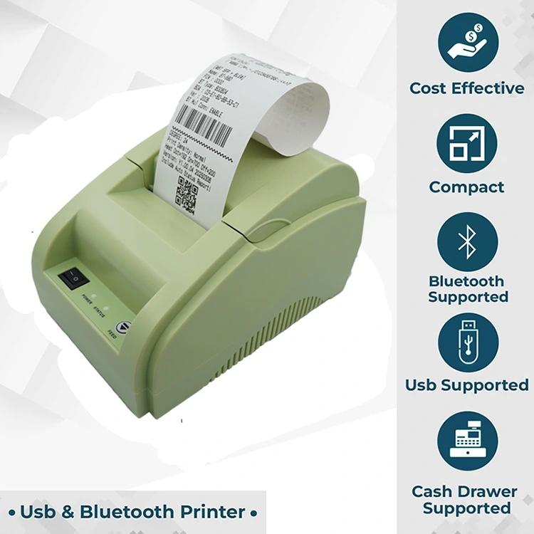 Tento produkt se vyznačuje kompaktním, malým a přenosným designem. Může se pochlubit bezdrátovými funkcemi včetně USB a Bluetooth, které umožňují připojení k různým zařízením, jako jsou smartphony a tablety, přes Bluetooth pro bezdrátový tisk. Doporučeno pro maloobchody, restaurace, kurýrní služby, pokladny a mobilní prodej, jeho přenosnost a vysoká rychlost tisku nezklame.