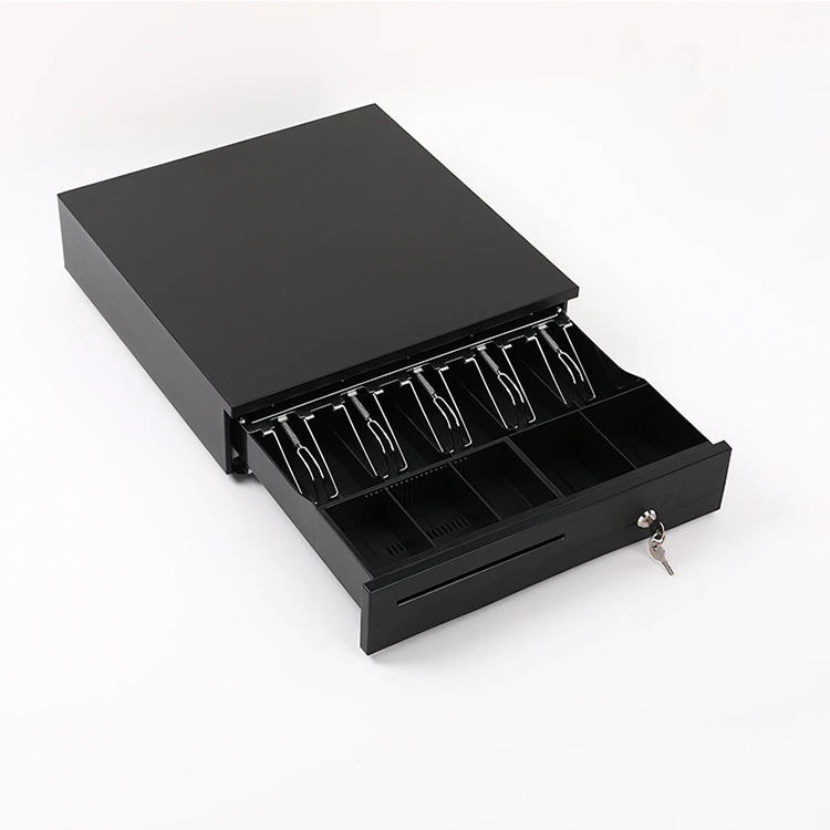 Pokladní zásuvka, známá také jako kasička, je jednou z hlavních hardwarových součástí finančního POS systému a je to produkt, který vám Peite jako profesionální výrobce může poskytnout. Má vnitřní přihrádky pro uložení bankovek a mincí různých nominálních hodnot. Po dokončení transakce elektromagnetický ventil pohání uzamykací mechanismus a zásuvka na peníze se automaticky otevře.