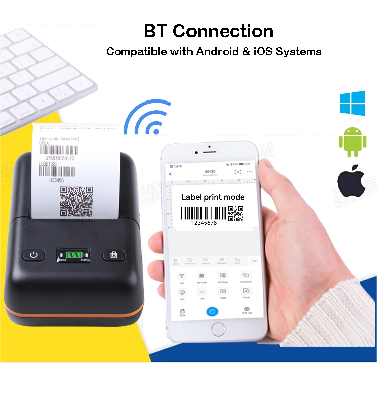 Naše přenosná termální tiskárna bluetooth podporuje 70 jazyků v angličtině, čínštině, francouzštině, španělštině, indonéštině, hindštině, kambodži, vietnamštině atd. Podporujeme Android, IOS, Linux, Mac book, Win2000, Win2003, WinXP, Win7, Win8, Win8.1, Win10, Win11 atd.